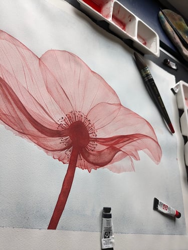 Le coquelicot, fleur éphémère, revient comme une obsession récurrente dans sa recherche plastique et symbolique.