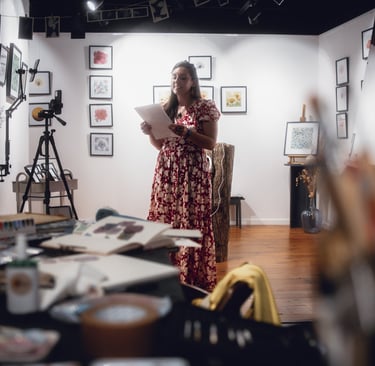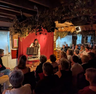 Artiste multidisciplinaire, son travail prend vie dans des formats participatifs : expositions interactives, installations immersives, lectures poétiques, spectacles, ateliers sensibles. Estelle conçoit ses projets comme des organismes vivants, mouvants, en rhizome : ses œuvres se déploient dans l’espace de manière poreuse, accueillant les récits, les publics et les lieux comme autant de co-auteurs. Elle aime les projets qui s’adaptent, qui s’infiltrent et laissent de la place à la fragilité.