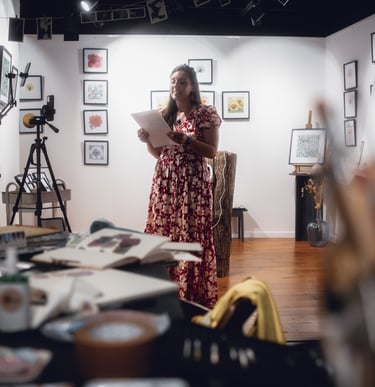 Artiste chercheuse, Estelle explore la poésie à travers le mouvement de l’eau, des couleurs et des mots.