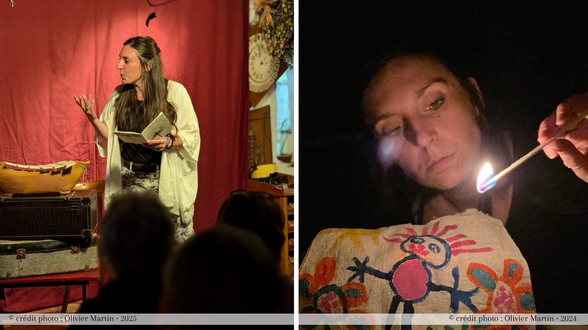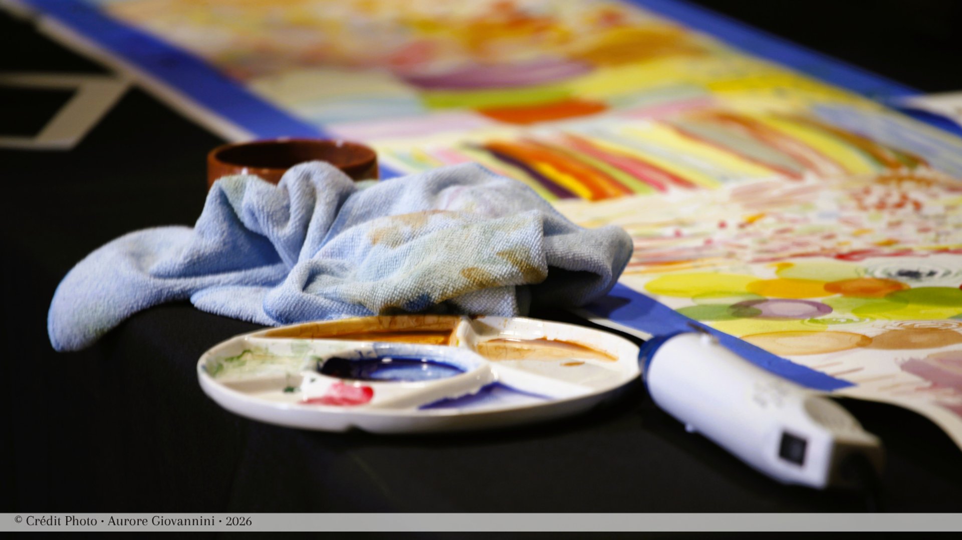 Peintures sur toile, protocoles relationnels, rituels poétiques, installations sonores, dispositifs sensoriels, lectures performées : je crée des formes poétiques et scéniques invitant à considérer les personnes non comme un public passif, mais comme des voyageur·euses, convié·es à traverser une expérience sensible, intime et relationnelle, jusqu’à faire œuvre collective.